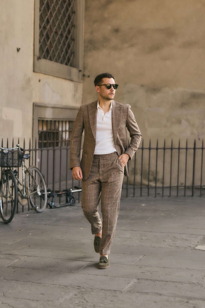 Le costume en été ne doit pas être une contrainte. Il peut devenir, au contraire, une seconde peau. Pour cela, il faut le bon tissu, la bonne coupe, et surtout, la bonne liberté intérieure. Celle de ne pas chercher à paraître. Celle d’assumer un polo sous une veste, un mocassin sans chaussette, un motif discret comme une confidence.L’élégance ne tient pas à ce qu’on porte, mais à la manière dont on le porte. Sous le soleil de Florence, je n’ai pas eu besoin d’en faire trop. Mon costume m’a suivi comme une ombre fraîche, un allié dans la lumière.