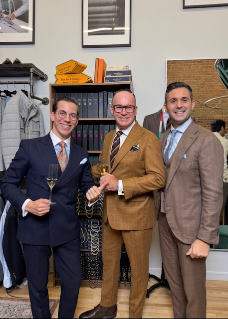 Dès l’entrée dans la boutique de Blandin & Delloye située sur la rue Notre-Dame à un jet de pierres du quartier des affaires dans le Vieux Montréal, l’atmosphère était chargée d’une énergie palpable. Une trentaine de passionnés de mode étaient réunis, tous avec un intérêt marqué pour le sartorial et la couture sur mesure. L’ambiance était soigneusement agencée, à la fois chic et conviviale, créant un cadre idéal pour les échanges. Les lumières tamisées et la décoration élégante ont contribué à une atmosphère chaleureuse où chacun se sentait à l’aise.
